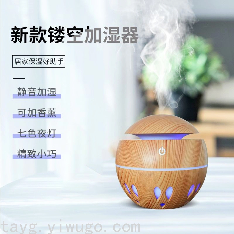 新款木纹加湿器家用空气加湿器香薰加湿七彩镂空夜灯七彩灯