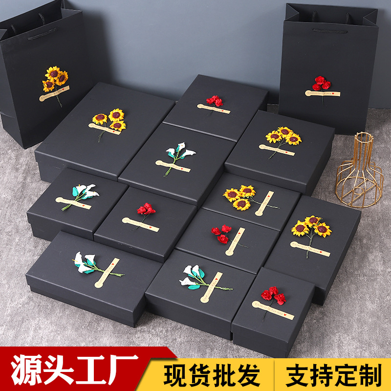 黑色礼品盒大号生日礼盒黑卡纸盒香水伴手礼物盒口红包装盒批发