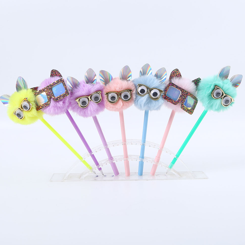 厂家供应卡通创意毛球中性笔毛绒可爱造型礼品笔学生儿童圆珠笔