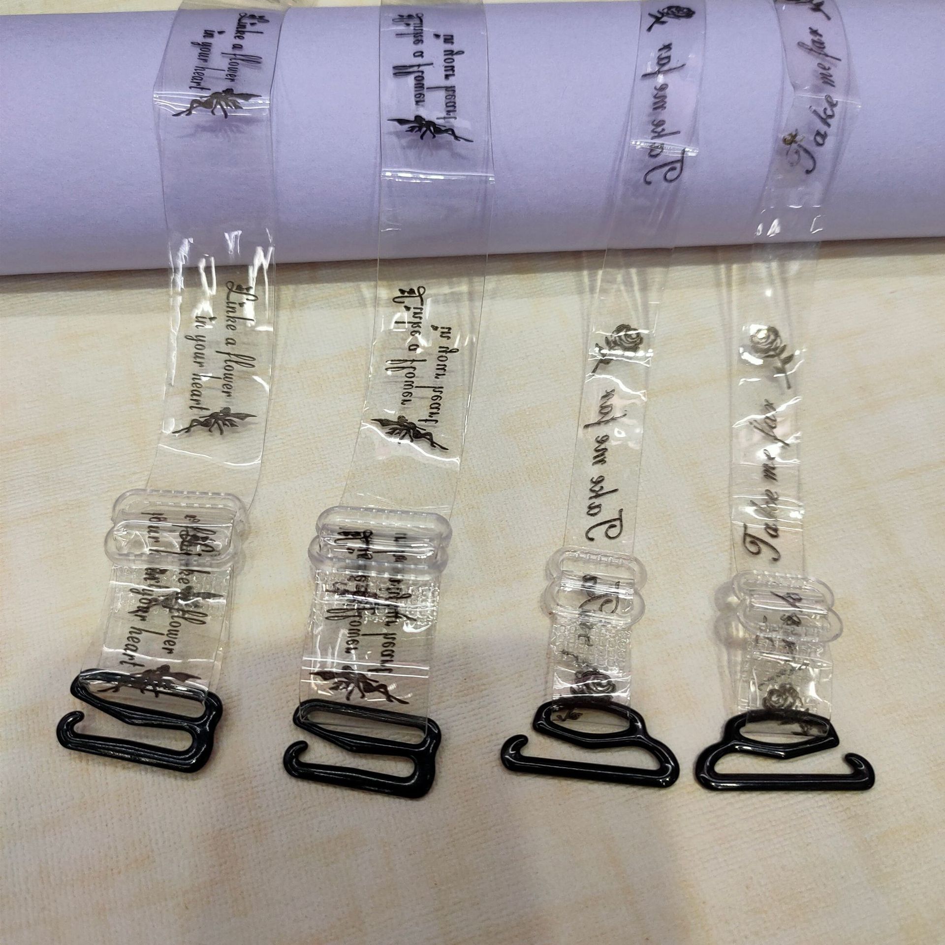 透明无痕隐形肩带仿纹身字母印花内衣肩带细带宽钩防滑可外露肩带