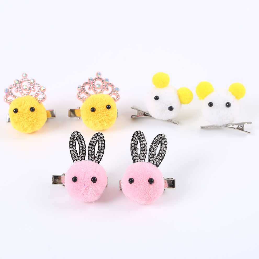 毛绒发夹可爱毛毛球老鼠兔子造型发夹毛茸茸发卡边夹头饰厂家直销