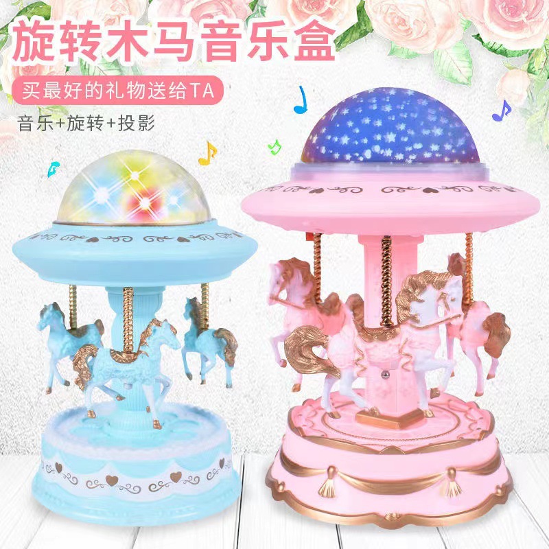 创意星空投影彩灯旋转木马音乐盒八音盒女孩儿童节生日礼物送女友