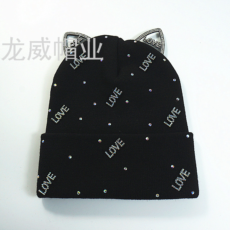 亲肤保暖冬毛线帽 保暖猫耳朵水钻针织帽 多种款式可选