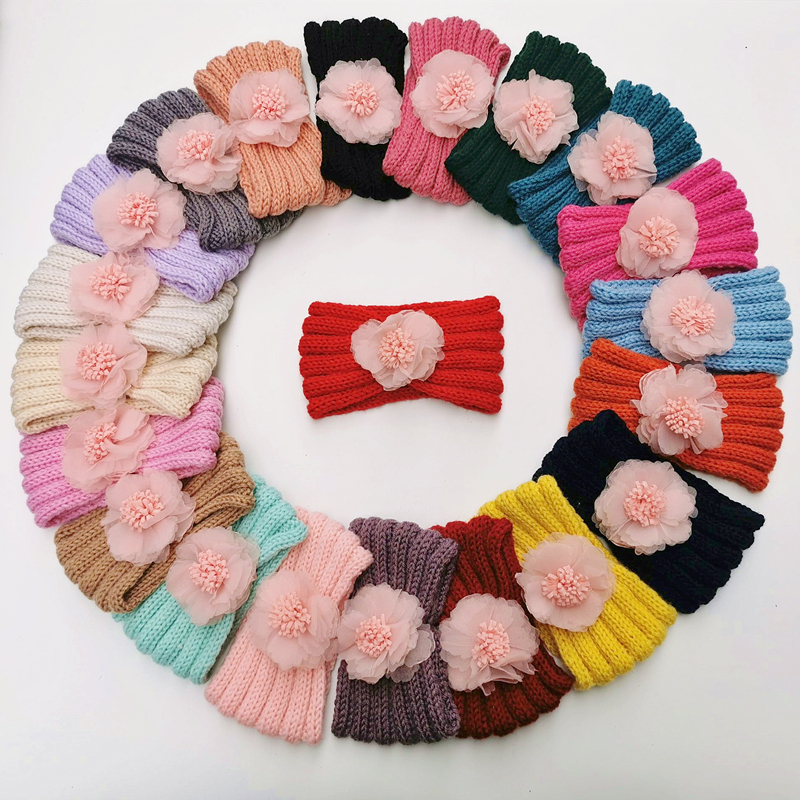 2021秋冬新品儿童发饰0-1岁婴儿宝宝护囟门可爱花朵毛线发带