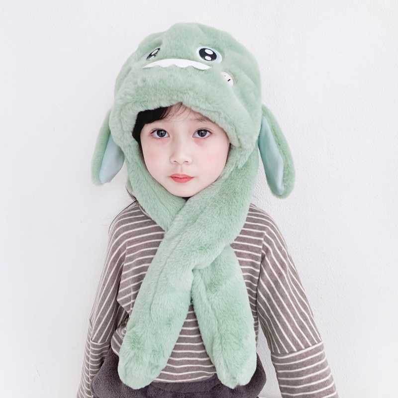 秋冬儿童毛绒护耳帽宝宝卡通恐龙防寒帽男女童加绒可爱会动抖音帽