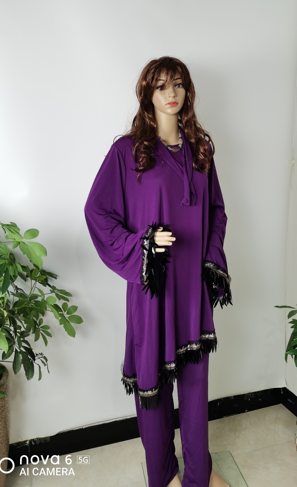 外贸热销中东阿拉伯非洲穆斯林女士亮片袖口下摆大袍套装
