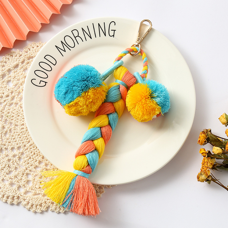 外贸欧美民族风饰品配件创意棉线流苏挂饰包包毛球挂件钥匙扣