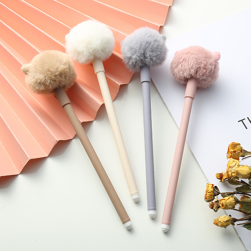 创意文具挂件卡通仿毛毛球笔学生中性笔毛绒耳朵圆珠笔批发