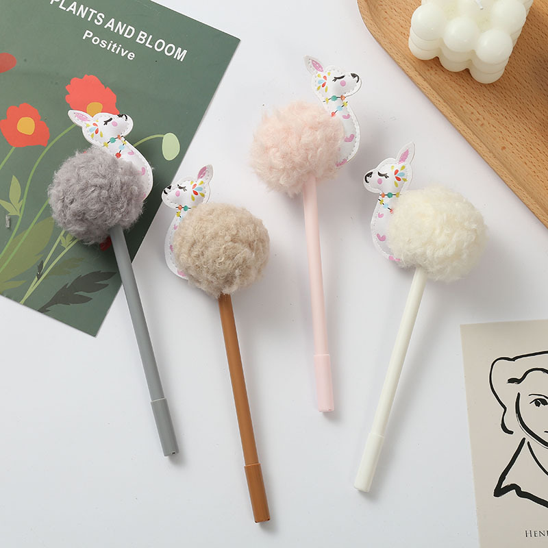厂家供应卡通羊驼毛球中性笔毛绒笔定制logo创意文具批发