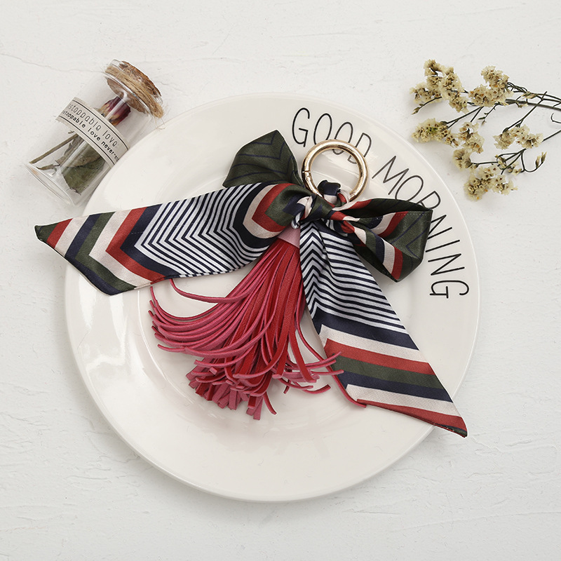 包包PU挂件蝴蝶结挂饰百搭丝巾流苏时尚钥匙扣挂饰手工编织吊穗
