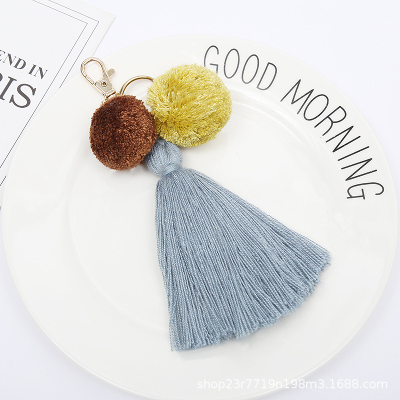 双色毛球挂饰流苏穗子箱包挂件百搭挂件金属扣式厂家批发供应