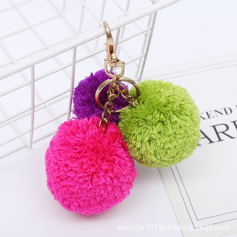 彩色毛绒毛球挂饰可爱包包毛球挂件金属扣式挂件厂家批发