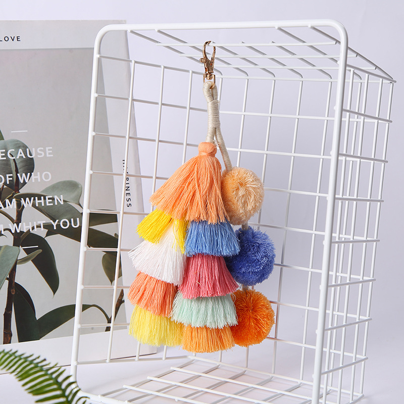 厂家直供创意流苏挂件 彩色毛球钥匙扣背包箱包配饰配件可定