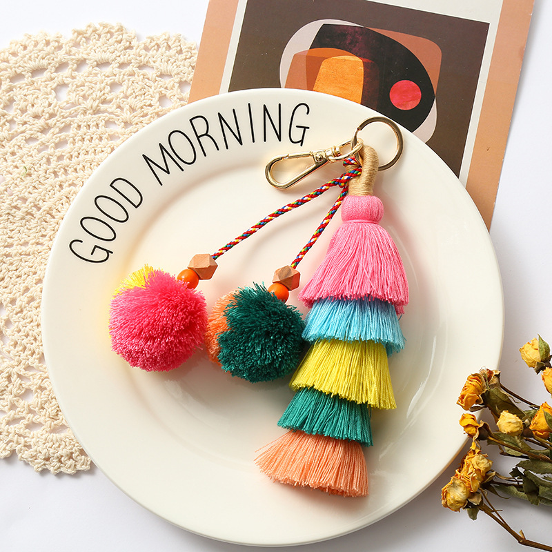 厂家直供欧美流苏挂件波西米亚风毛球配饰创意包包流苏挂件