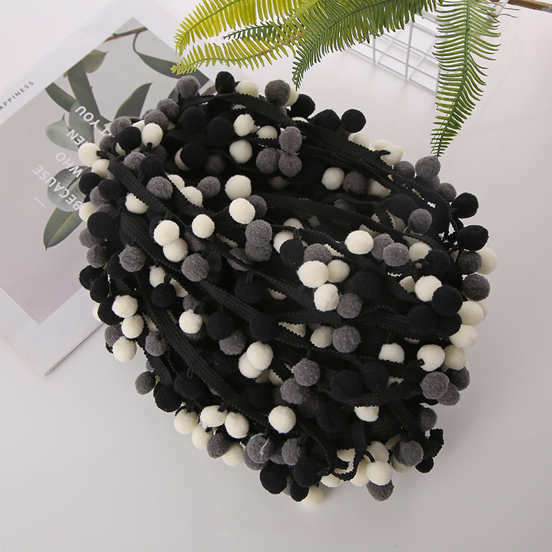 1.5cm三角混色花边小毛球diy流苏窗帘帽子装饰配件批发厂家现货