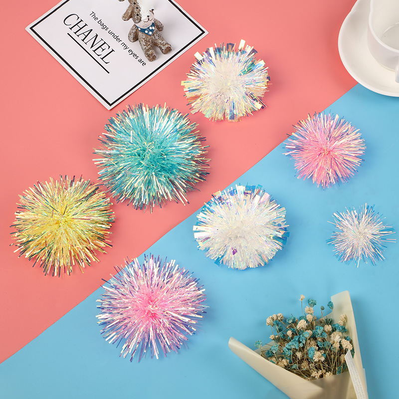 厂家批发亮片金丝球圣诞装饰创意金丝毛球配饰多规格定制量大从优