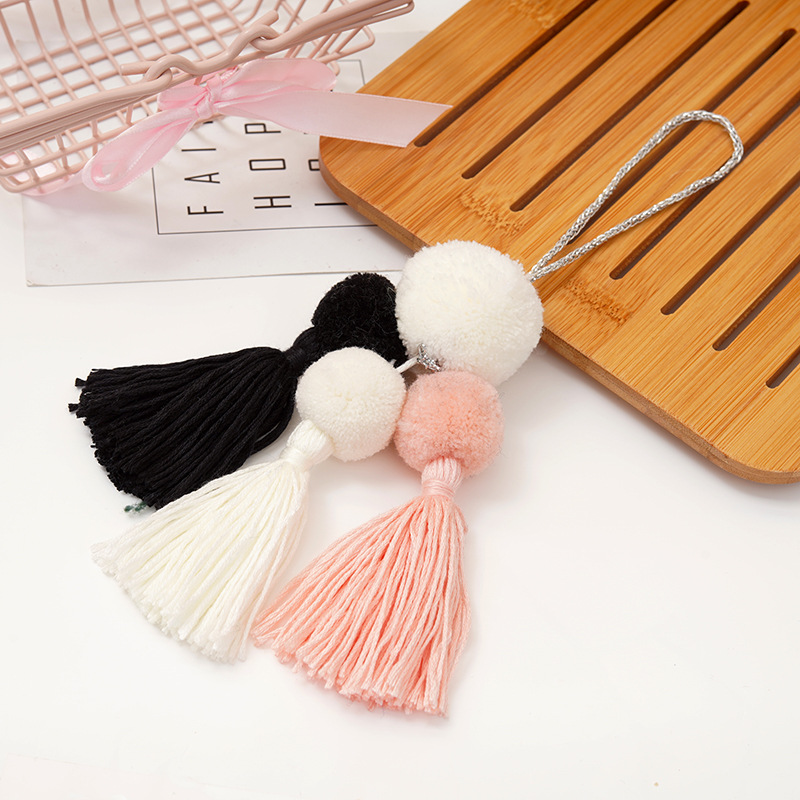 现货开司米围巾毛球 创意三色流苏吊坠 服饰包包配件毛球厂家定制