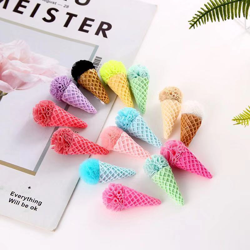 2.5cm弹力网布球创意彩色甜筒发卡配件 现货包包帽子辅料厂家批发