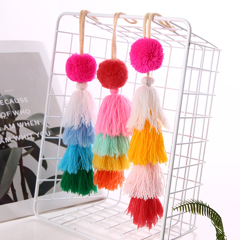 速卖通热卖diy毛球流苏配饰撞色可选纺织辅料 包包配饰厂家定制
