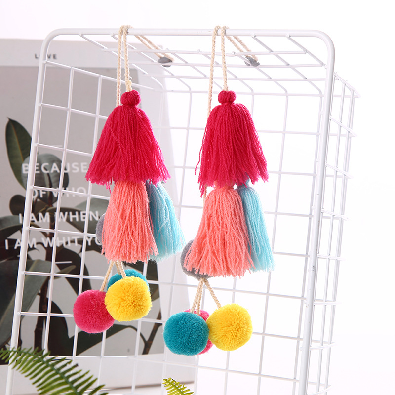 外贸热卖双头撞色毛球服饰流苏装饰吊坠包包配饰辅料挂件支持定制