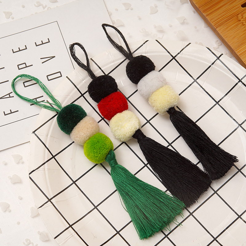 厂家批发彩色开司米服饰米球编织流苏吊穗 包包挂件现货 支持定制