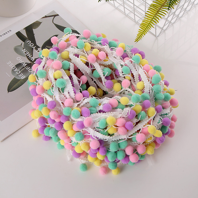速卖通热销1.5cm开司米毛球花边4色手工装饰配件厂家现货毛球辅料