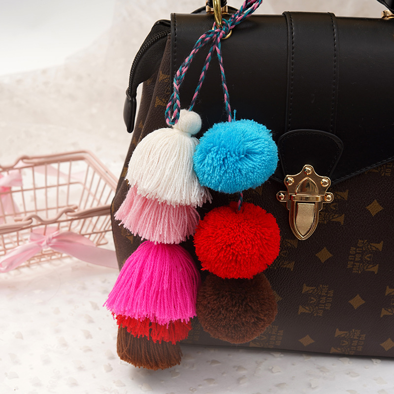 彩色5层5.5cm开司流苏米毛球 编织流苏吊穗 创意包包挂件厂家批发