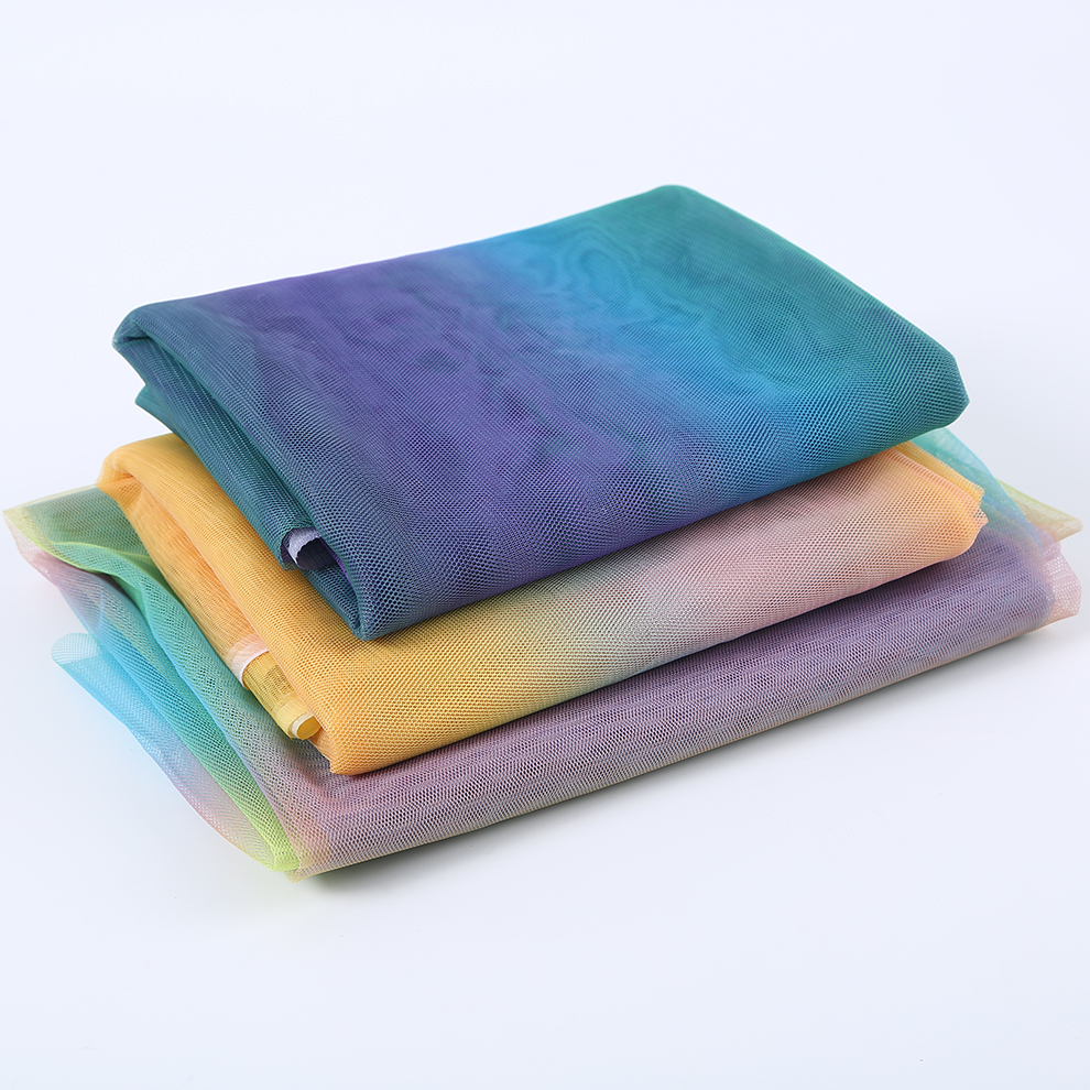 段染网纱花边渐变网布 网布数码印花 六角网眼布 彩虹印花面料