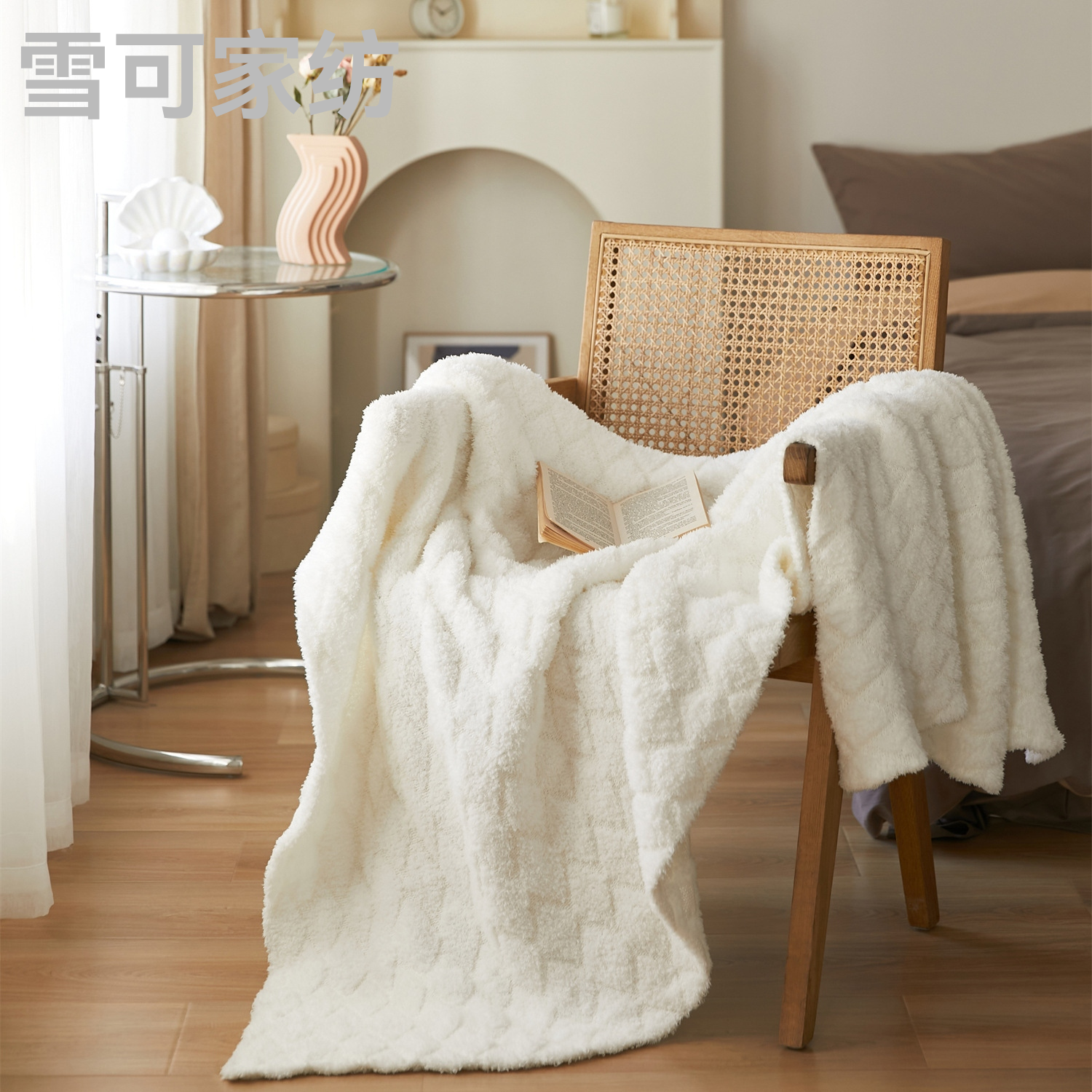 半边绒毯子秋冬加绒菱格立体半边绒毯针织盖毯沙发搭毯130×160