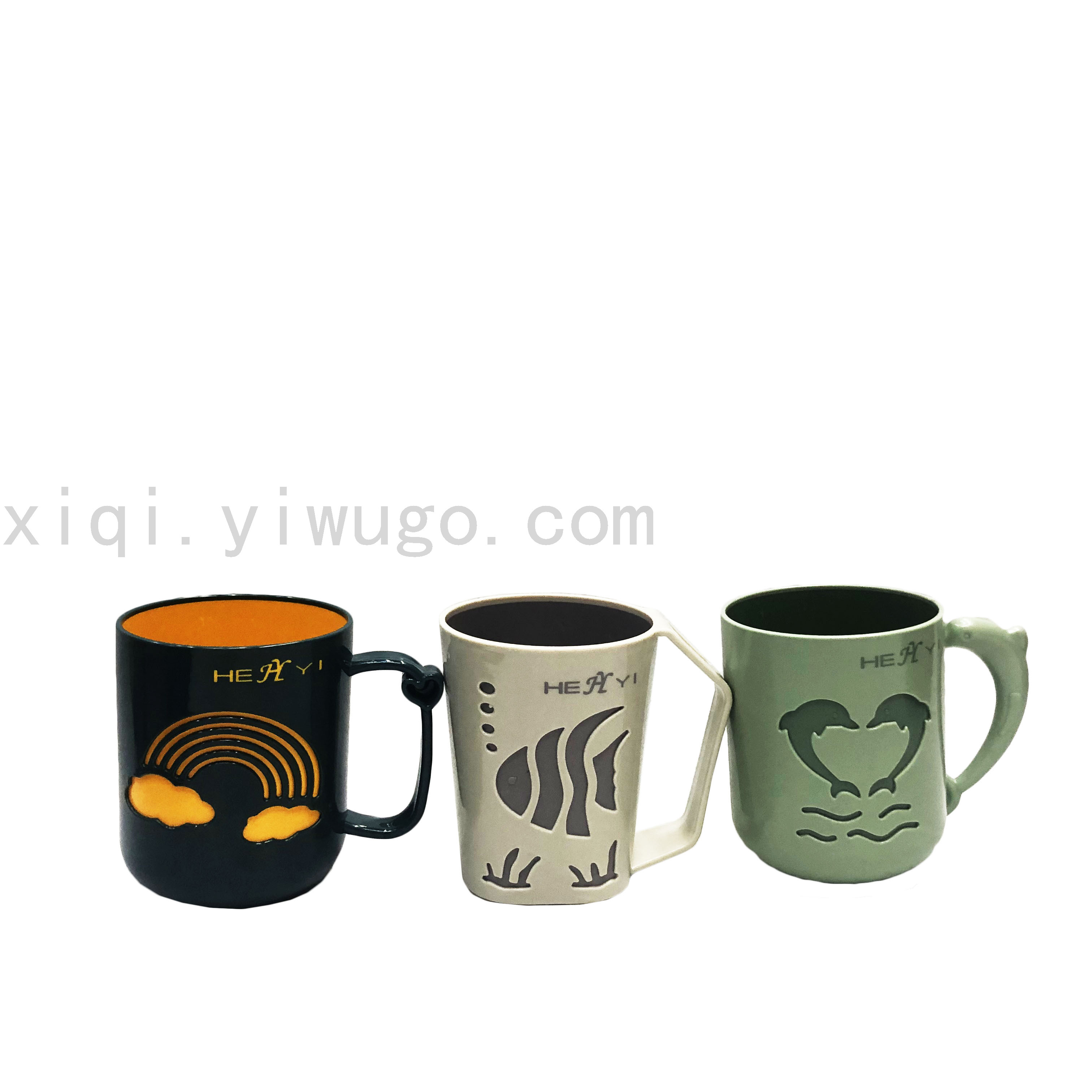 高级天鹅心鱼海豚鲳鱼双色杯热气球彩虹杯双色漱口杯子RS-201546