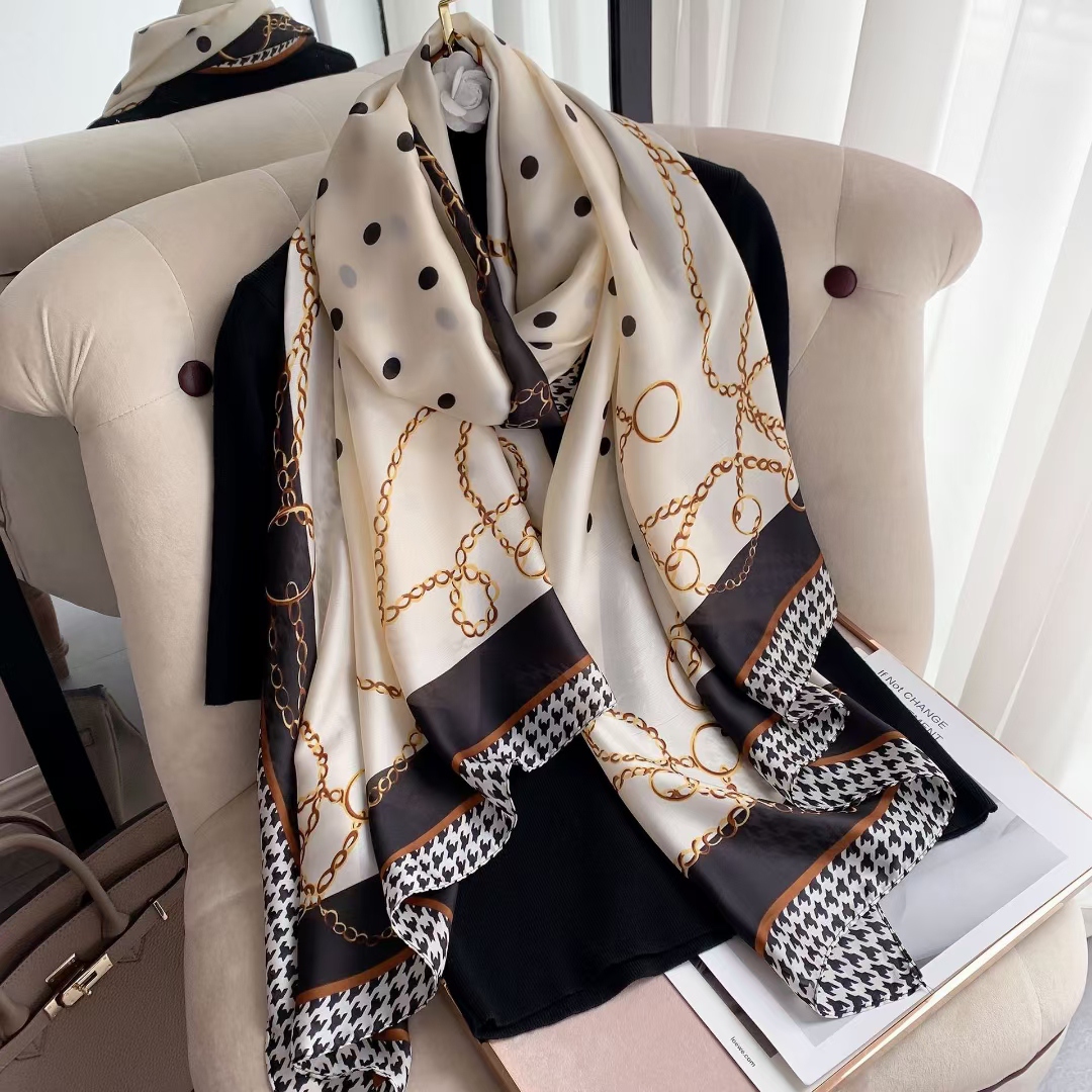 新品春夏季丝巾链条欧美出街通用百搭装饰围巾女保暖两用披肩