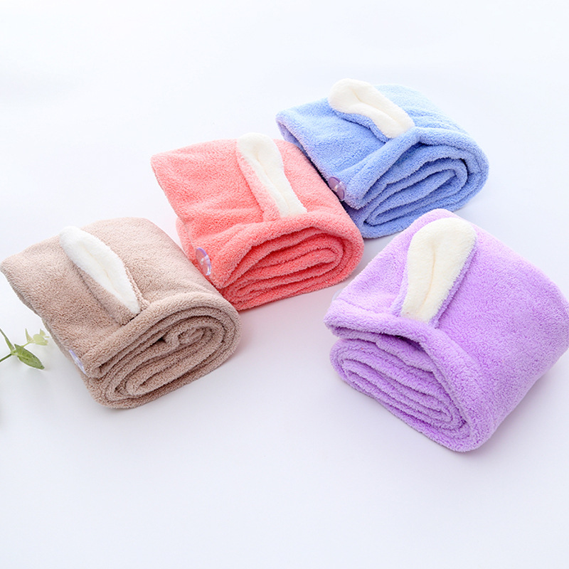 彩星干发帽高密珊瑚绒兔头卡通浴帽柔软吸水易干包头巾