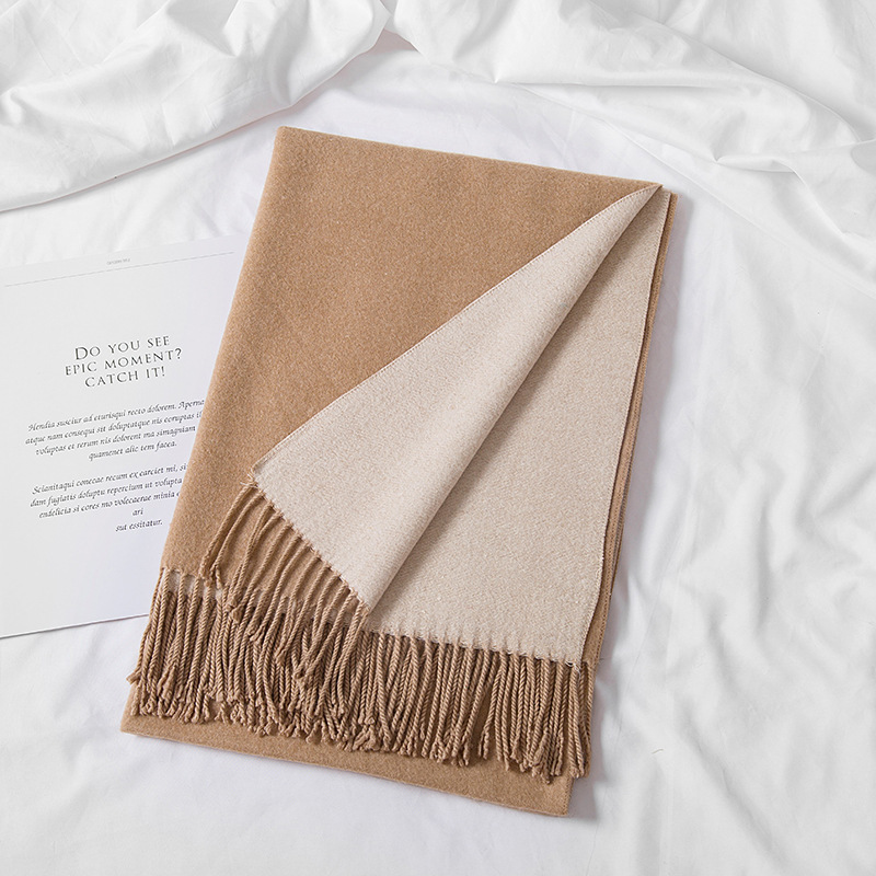 秋冬新款双面纯色仿羊绒围巾 加厚流苏女士双色保暖披肩百搭围脖