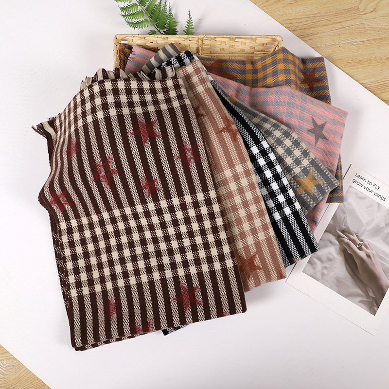 围巾女韩版秋冬百搭日系潮星星仿羊绒格子两用保暖披肩学生围脖