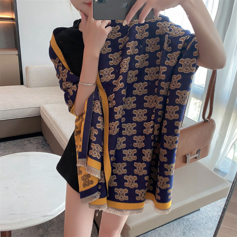 秋冬季仿羊绒加厚加长款提花围巾女空调披肩短须流苏保暖围脖批发