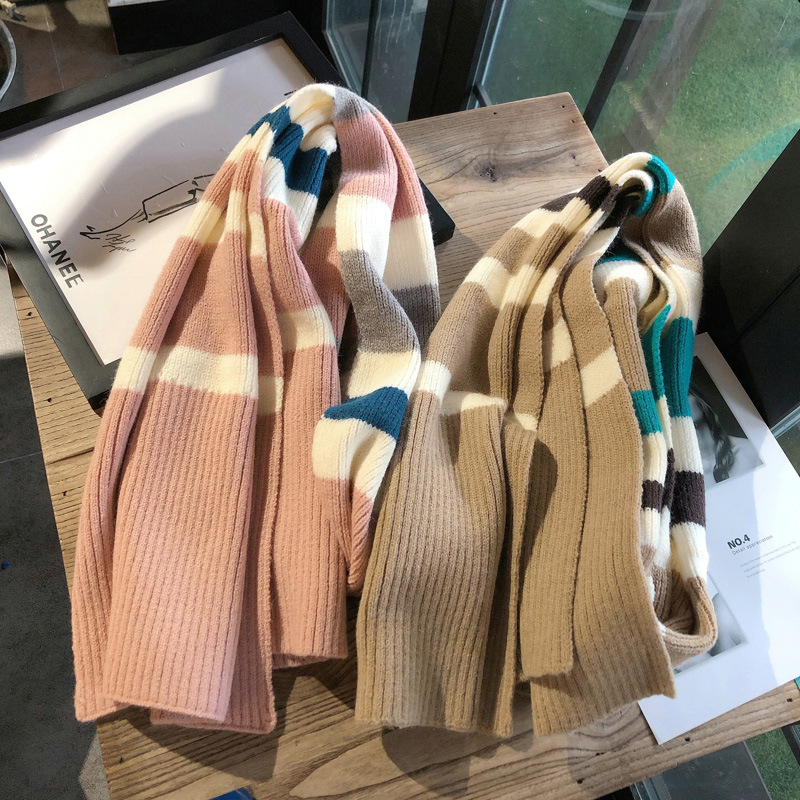 2021网红款冬围巾女冬季拼色大条纹围脖保暖可爱少女学生洋气时尚