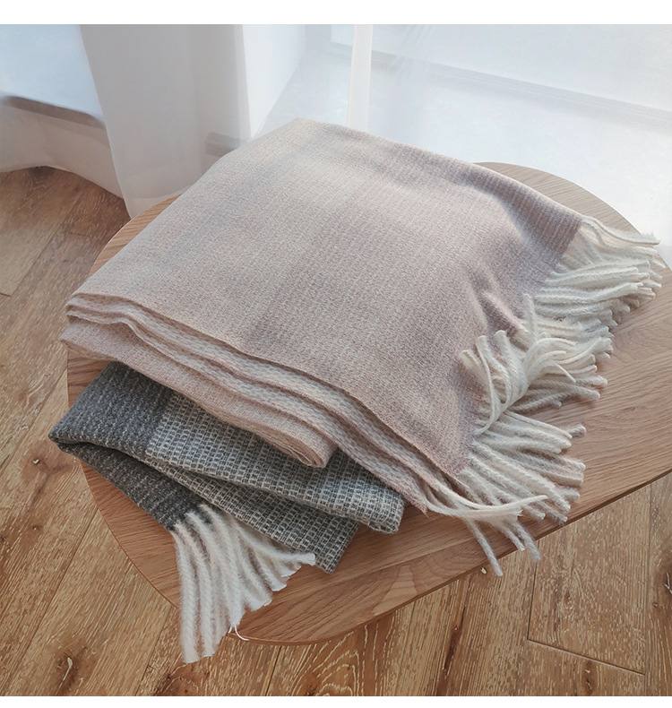 新款韩版小香风拼接流苏仿羊绒学生YILOO时尚围巾披肩两用