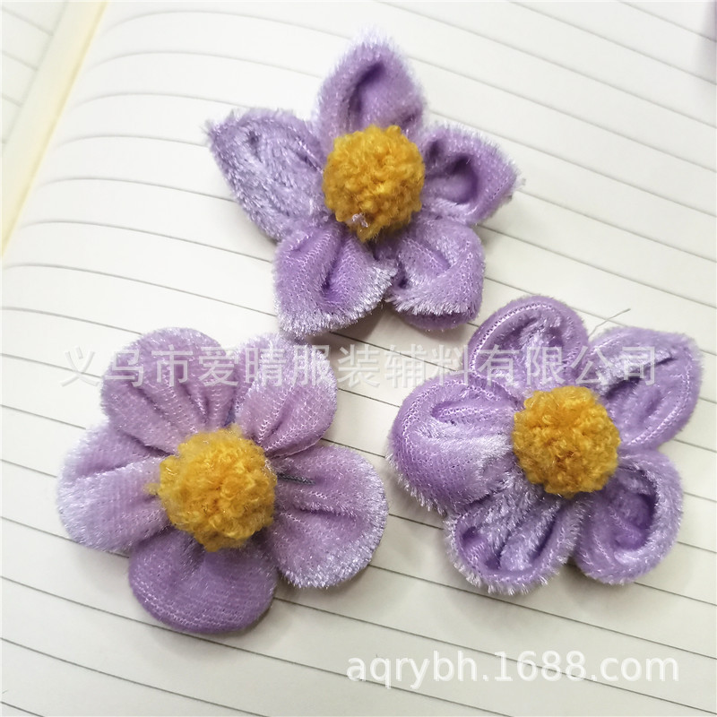 纯手工塞棉紫色五瓣花朵发饰发箍向日葵发夹布艺蝴蝶结头饰品辅料