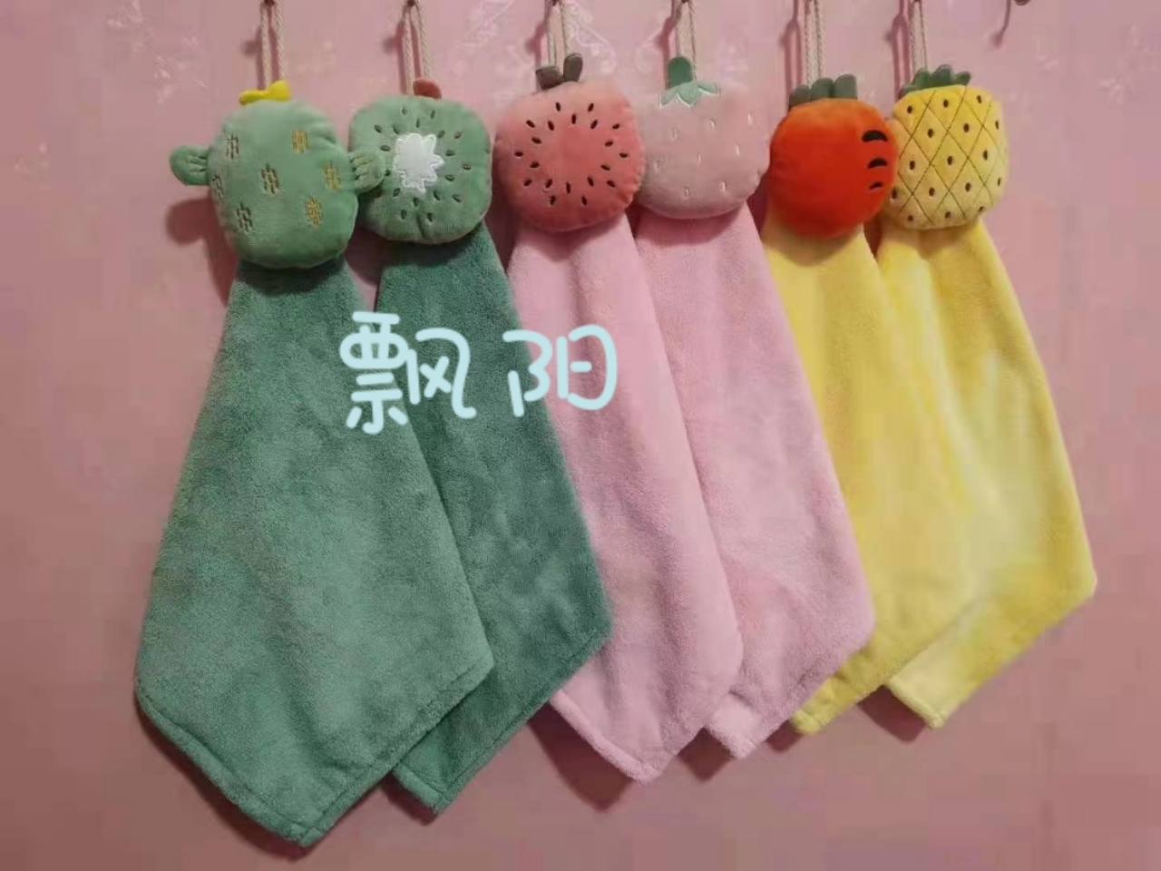 擦手巾挂式比纯棉软珊瑚绒厨房家用卡通可爱吸水加厚方巾