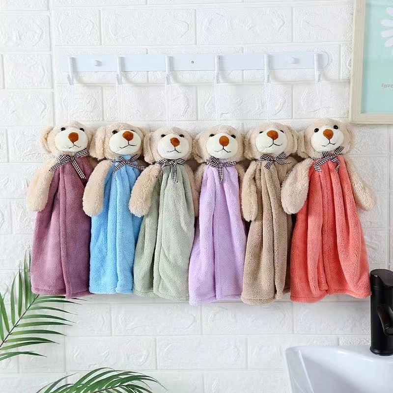 擦手巾挂式比纯棉软珊瑚绒厨房家用卡通可爱吸水加厚方巾