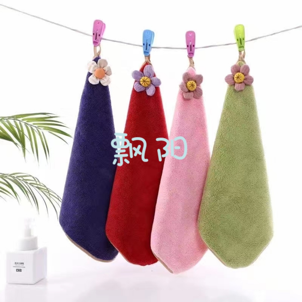 擦手巾挂式比纯棉软珊瑚绒厨房家用卡通可爱吸水加厚方巾