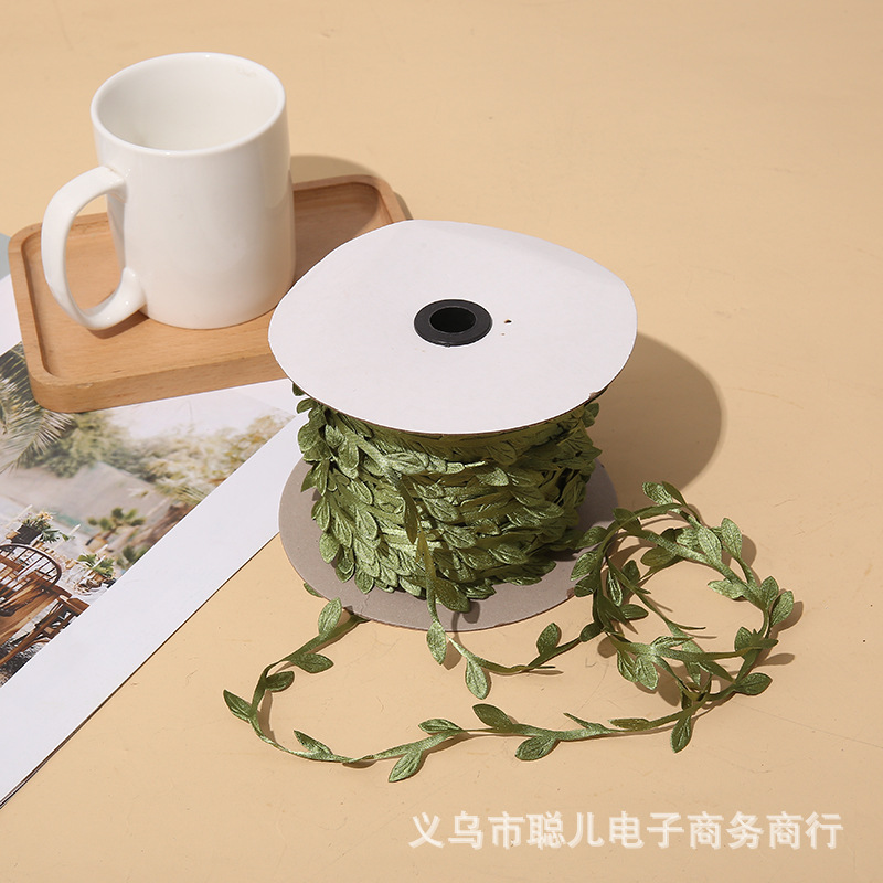 手工diy礼盒藤条 绿色森林系麻绳编织花瓶绿叶照片墙装饰绳