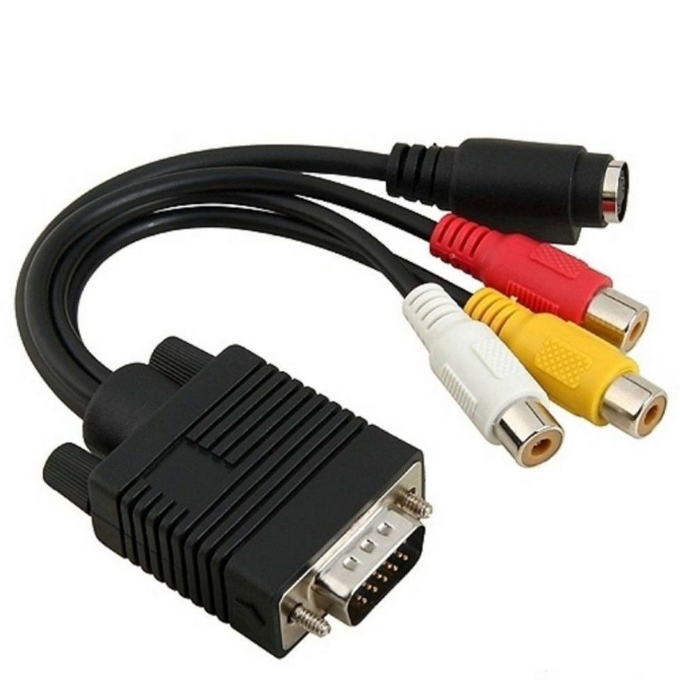 vga转av线电脑连接高清电视显示器S端子莲花视频线转换头三色差线