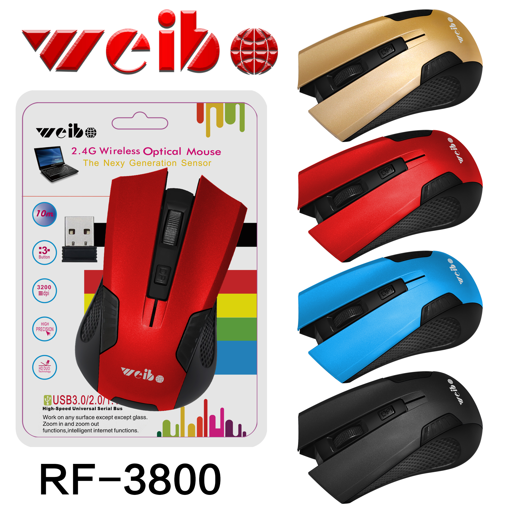 weibo伟博电脑无线鼠标10米智能省电厂家直销
