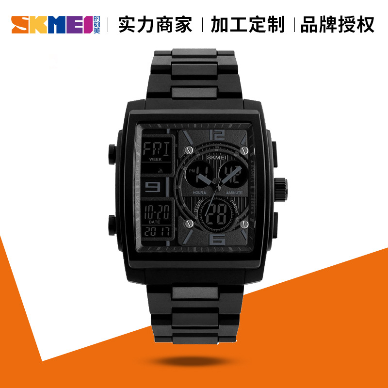 时刻美个性方形双显电子表时尚男士学生功能手表外贸爆款一件代发