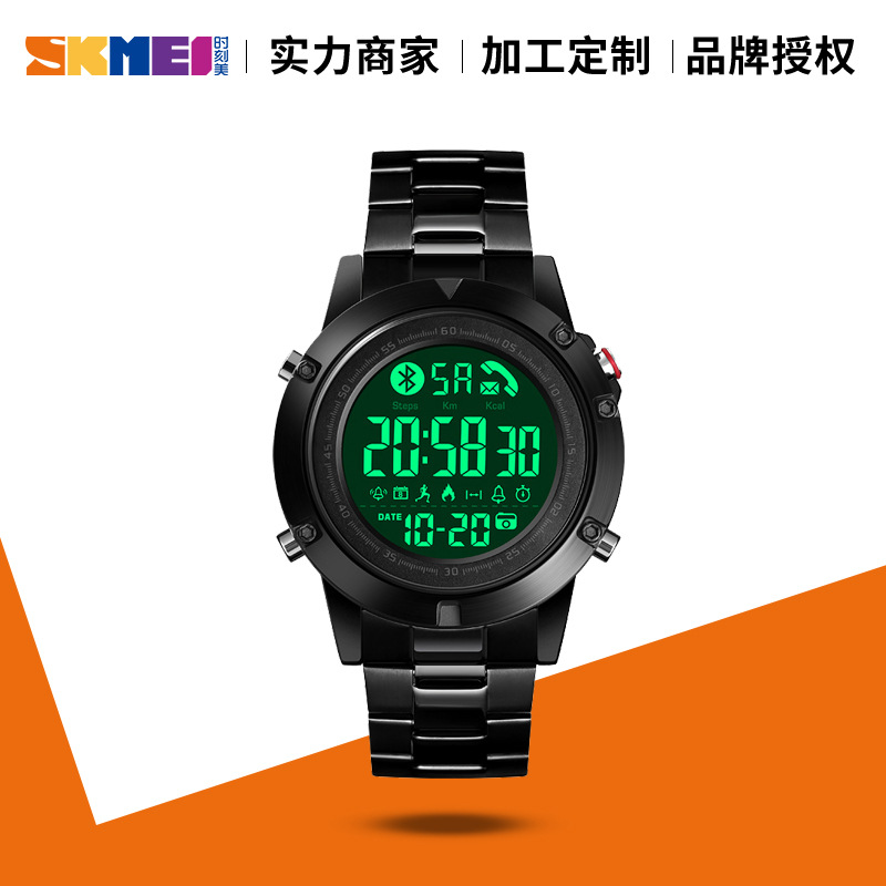 时刻美跨境货源时尚休闲钢带智能手表 蓝牙来电信息提醒学生腕表