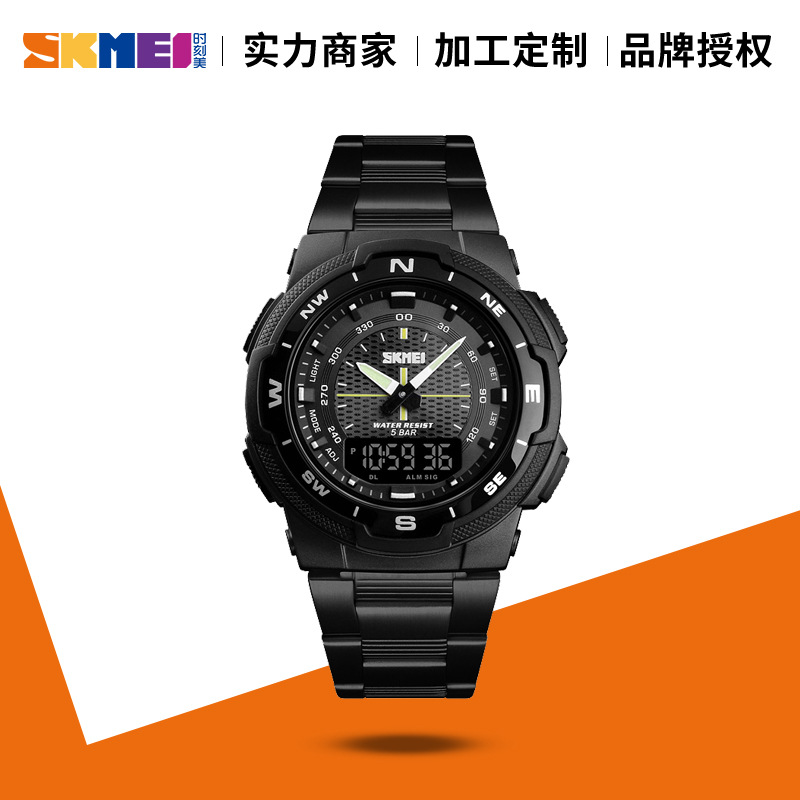 时刻美东南亚爆款电子表 学生户外运动玫瑰金钢表带双显防水手表