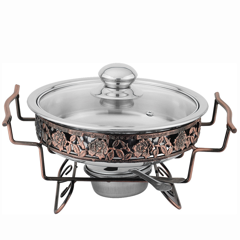厂家直销阿拉伯风格花韵酒精火锅不锈钢酒精炉干锅小火锅自助餐炉