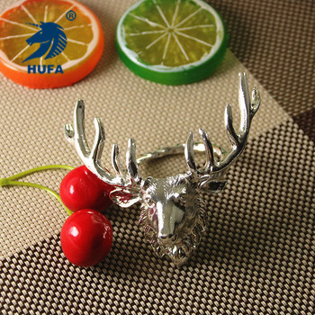厂家批发新品金属餐巾圈圣诞鹿餐巾环 酒店摆台鹿头口布圈餐巾扣