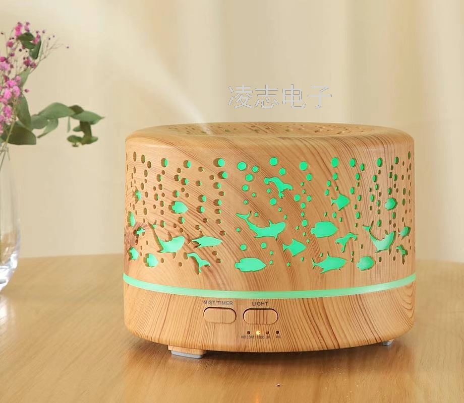 海底世界镂空七彩大容量500ml香薰机精油扩散器木纹加湿器 厂家